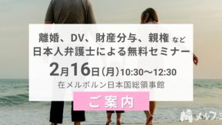 2月16日(月)離婚、DV、財産分与、親権など、日本人弁護士による無料セミナー 【在メルボルン日本国総領事館にて開催 】