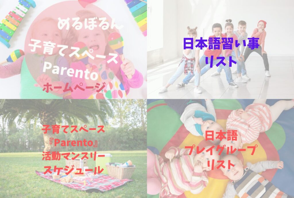 日本語環境を保ちたい方、海外での子育てに不安がある方や、日本語で交流したい方、子どもに日本文化を体験させたい方には日本語プレイグループはおすすめです。ペアレントさんが日本語プレイグループリストを作ってくださっています。(毎年2月に更新)