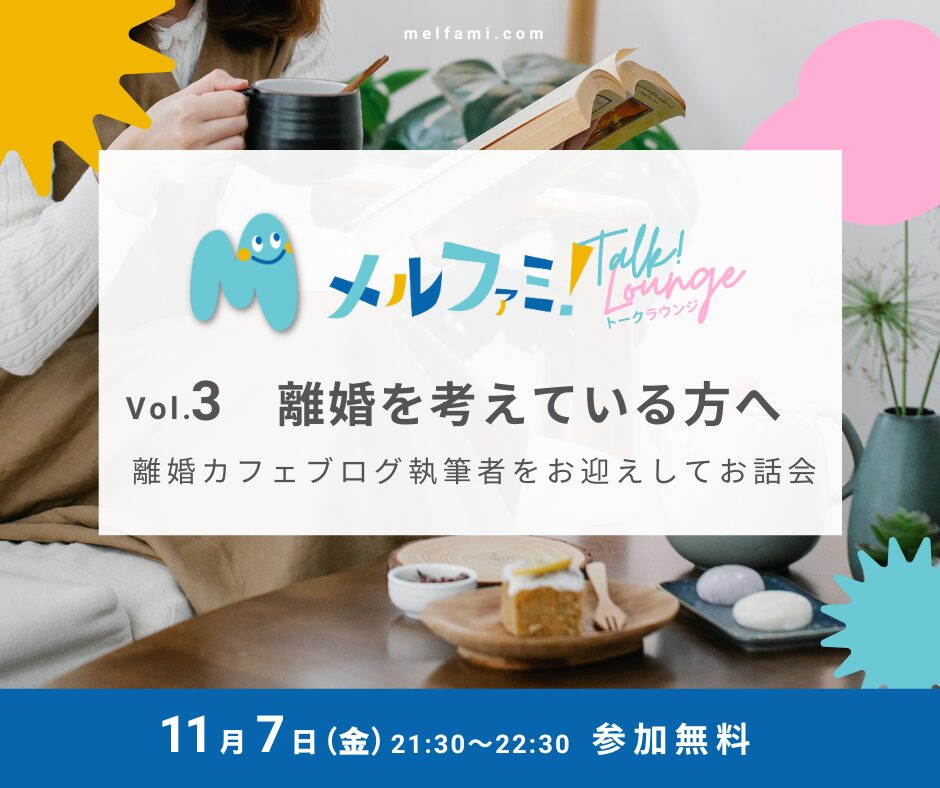 メルファミ!では、そうした方々が安心してお話しできる「つながりと情報交換の場」として、【離婚を考えている方、悩んでいる方へのお話会】を開催いたします。